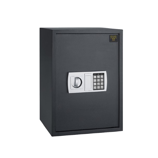 The Digital Safe from Fleming Supply will keep your valuables carefully locked away. This steel safe offers 1.8-cubic-foot of interior space that will accommodate a wide range of personal items, including legal documents, passports, jewelry, cash and more. The contents of this extra-large safe are hidden behind a two bolt, pry resistant steel door that requires the manual override keys or programming 3-8-digit passcode of your choice to open the electronic locking mechanism. The safe also comes with predrilled holes and hardware to mount it to the wall or floor in any bedroom, closet, office, or hotel setting.