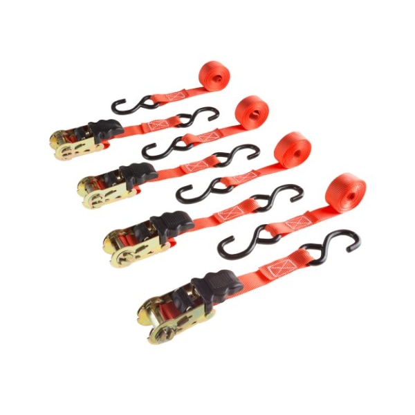 Take the stress and concern out of moving expensive and large items in your trailer or truck with these Ratchet Tie Down Straps (4 Pack) by Fleming Supply. Ease and durability are clearly displayed in the design of the comfort grip ratchet buckle and vinyl coated S-Hooks for secure and effortless handling. Whether a motorcycle, ATV, boat, or large appliance these straps ensure a trusted and safe haul with exceptional quality and strength.