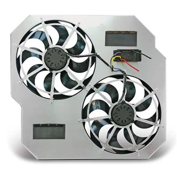 Flex-a-lite's rugged new monster direct-fit electric fans were designed specifically for the cooling demands of big trucks. Vehicles equipped with these fans have recorded gains as high as 17 hp and 20 ft.-lbs., with a 2-3 mpg improvement. Other features and benefits include dual 15 in. Diameter fans, a glass-reinforced nylon shroud, a variable speed control, quicker warms-ups and cool-downs, quieter operation, and a whopping 5,500 cfm maximum airflow rating. All necessary mounting hardware is included for installation. Specifications Number of Blades - 8 blades Blade Material - Plastic Blade Color - Black Shroud Color - Black Shroud Material - Aluminum Air Conditioning Relay Included Mounting Brackets Included Mounting Hardware Included Fits For - RAM 2500,RAM 3500 2003-2008