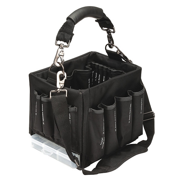 If you are looking for a tool bag that can hold all your tools, the Flexcart FC-30TBNT Tool Bag is the perfect choice. The open top allows you to easily access the contents of this black polyester tool bag. With 42 pockets and a series of 30, this tool bag has plenty of space for all your tools. It has an overall depth, length and width of 10 in., 13 in., and 13 in. respectively. It also has an overall height of 11 in. and comes with a padded shoulder strap for easy carrying. If you want to keep your tools organised when on the go, then the Flexcart FC-30TBNT Tool Bag is what you need.