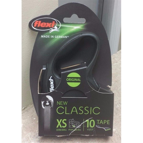 10 ft tape leash, in pocket format for dogs, cats and small animals up to 26 lbs. Intuitive handling, thanks to convenient brake button and ergonomic grip. Fast, reliable response by the Short-stop one-handed braking system. Made in Germany Features Extra Small Classic Tape Leash Specifications Color: Black Size: 26 oz x 10 ft. Weight: 0.5 lbs