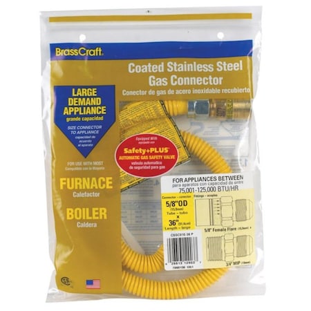 3/8'' ODx36'' Coated Stainless Steel Gas Connector 1/2'' MIP, Tapped 3/8'' FIPx1/2'' MIP SmartSense
