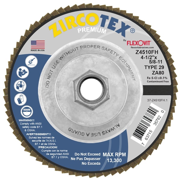 FLAP DISC ZIRCOTEX 4-1/2 in X5/8-11