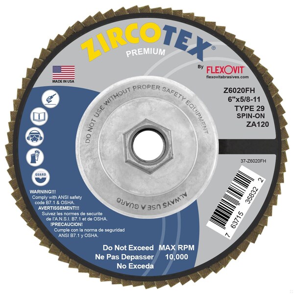 FLAP DISC ZIRCOTEX 6 in X5/8-11