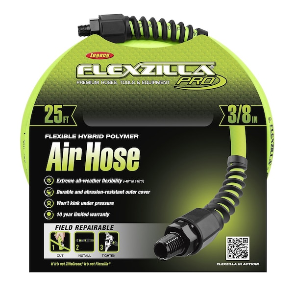 Flexzilla Pro Air Hose, 3/8in x 25ft, 1/4in MNPT Fittings, ZillaGreen