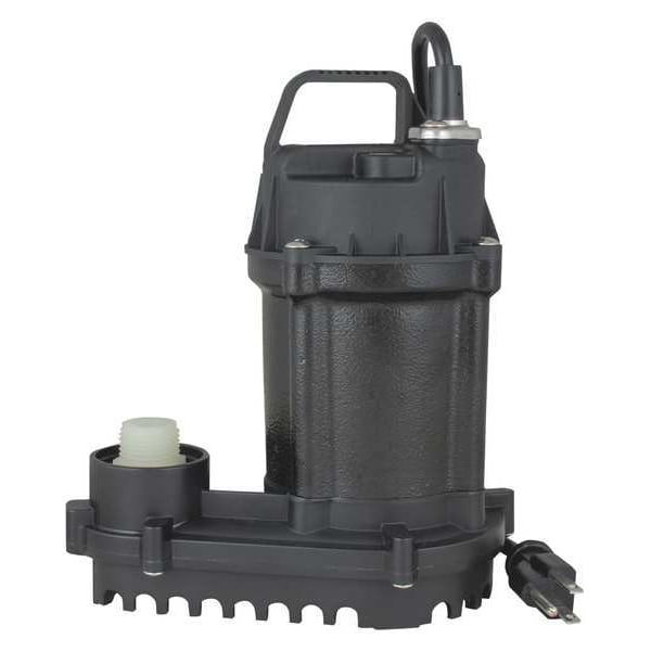 Submersible Sump Pump, HP 1/6, Rated Voltage 120V AC, Hz 60 Hz, Amps 4 A, Switch Actuation No Switch Included, Switch Electrical Connection No Switch Included, Off Point 1/8 in, On Point 2 in, Body Material Cast Iron, Impeller Material Thermoplastic, Flow Rate @ 5 Ft. of Head 37 gpm, Flow Rate @ 10 Ft. of Head 30 gpm, Flow Rate @ 15 Ft. of Head 22 gpm, Flow Rate @ 20 Ft. of Head 11 gpm, Max. Head 23 ft, Min. Sump Pit Dia. 12 in, Body Dia. 8 in, Overall Height 11 in, Discharge 1 1/2 in FNPT