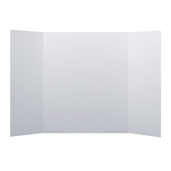 Constructed from sturdy lightweight 1-ply corrugated fiberboard with overlapping side panels that make transporting the board easy. The smooth white surface has a matte finish that easily accepts markers, crayons, paints and adhesives. Back of board is brown kraft. Measures 24" high x 48" wide overall—side panels measure 24" high x 12.75" wide and the center panel measures 24" high x 22.5" wide. Pack of 24