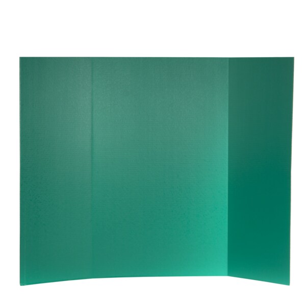 Constructed from sturdy lightweight 1-ply corrugated fiberboard with overlapping side panels that make transporting the board easy. The smooth, bold green surface has a slightly glossy finish that easily accepts markers, crayons, paints and adhesives. Back of board is brown kraft. Measures 36" high x 48" wide overall—side panels measure 36" x 12.75" wide and the center panel measures 36" x 22.5" wide. Pack of 24