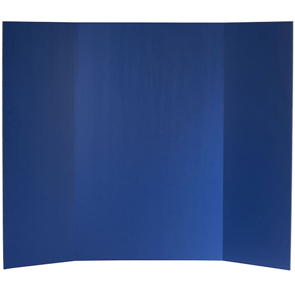 Constructed from sturdy lightweight 1-ply corrugated fiberboard with overlapping side panels that make transporting the board easy. The smooth bold blue surface has a slightly glossy finish that easily accepts markers, crayons, paints and adhesives. Back of board is brown kraft. Measures 36" x 48" overall - side panels measure 36" high by 12.75" wide and the center panel measures 36" high by 22.5" wide. Box includes 24 boards.