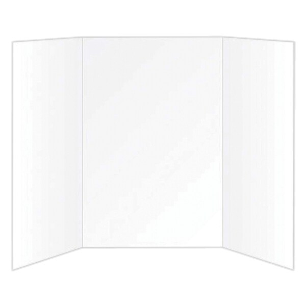 The smooth, bright white surface has a slightly glossy finish that easily accepts markers, crayons, paints and adhesives. Measures 36" high x 48" wide overall—side panels measure 36" high x 12" wide and the center panel measures 36" high x 24" wide. Back of board and core are white. Pack of 10.