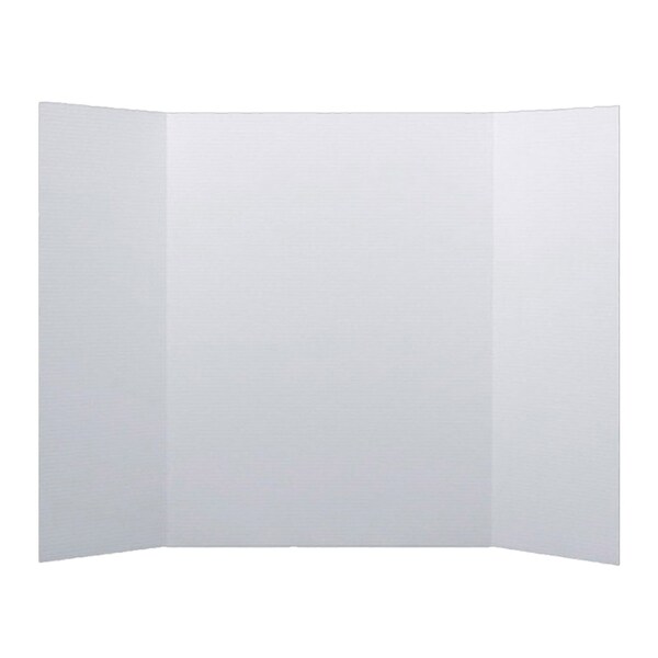 Our project display boards allow you to customize and easily create a lasting impression. The durable, smooth, bright surface has a slight glossy finish that easily allows markers, glue, paint and adhesive. These project boards are great for science fairs, presentations, picture displays, school projects and tabletop exhibits. You can easily transport your project board because of the overlapping side panels. Our project boards have color on one side and natural brown kraft on the back. Made from 1-ply corrugated paper that is 100% recyclable. Project boards measure 36 H x 48 W. Side panels measure 36 H x 12.75 W. Center panel measures 36 H x 22.5. Pack of 10 white boards.