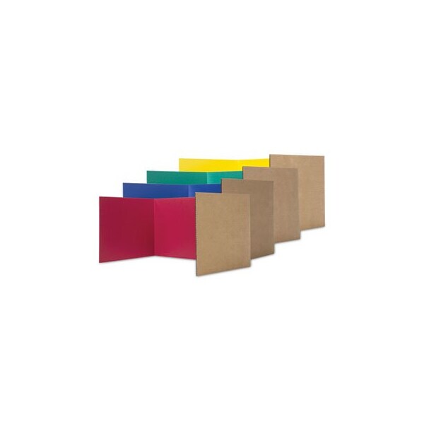 An economical solution for providing partitions in the classroom and using them as desk dividers. These tri-fold corrugated study carrels are ideal for instant testing centers, private study areas and reinforcing social distancing within the classroom. Study carrels have been a big hit with teachers because they are made to fold flat for storage when not in use. They too are a great addition to act as a sneeze and cough shield. This product does not prevent disease or infection. Color: Blue; Green; Red; Yellow; Color Family: Multicolor; Overall Width: 48in; Overall Height: 12in.