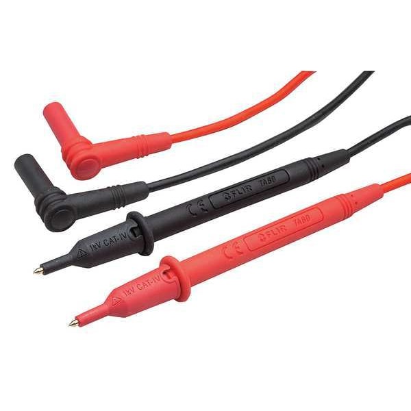 Test Leads, Color Code Black, Red, For Use With Any Multimeter, Clamp Meter, Test Instrument that Accepts a Standard Shrouded Banana Plug, Length 3 3/8 ft, Maximum Voltage 1,000 V, Number of Test Leads 2, Instrument Safety Rating CAT IV 1000V, Maximum Current 10 A, Meter Connection Type Right Angle Shrouded Plug, Features Gold-Plated Tips for Professional Precision. Double-Extruded Multi-Color Silicone Leads with Wear Indication, Manufacturers Warranty Length 2 yr, Meter Connection End Size 4 mm