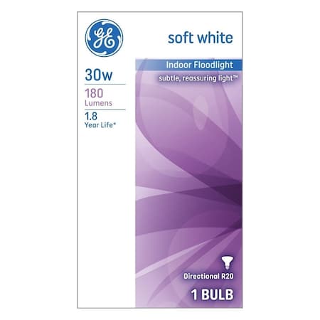 Light Bulb, 30 W, R20 Lamp, E26 Medium Lamp Base, 180 Lumens, 2600 K Color Temp, Soft White Light