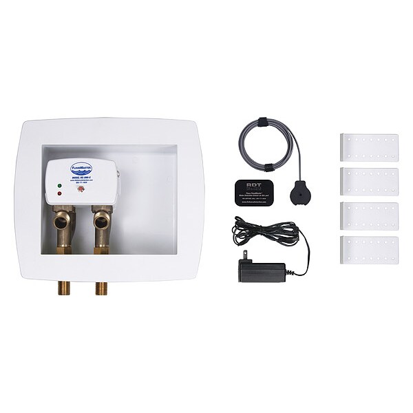 (2) Water Hammer Arrestors, (4) Outlet Box w/ Mounting Straps, 120V AC Power Plug w/ 7 ft Lead Wire, Leak Detection Receiver, Magnetized Water Sensor w/ 8 ft Lead Wire, Metal Plate, Trim Plate