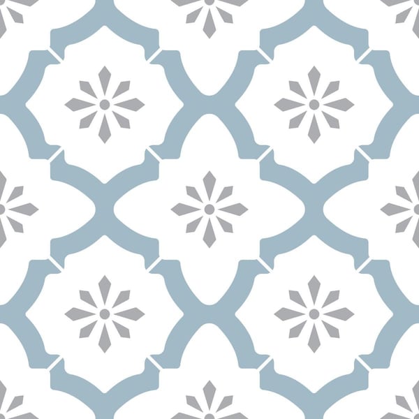 Complete with white and light slate hues, these floor tiles have a bright and clean look. Their understated geometric design will dazzle in bathroom and kitchens. Alfama Peel & Stick Floor Tiles Peel and Stick Tiles contains 10 pieces on 10 sheets that measure 12 x 12 inches. Peel and stick to apply.