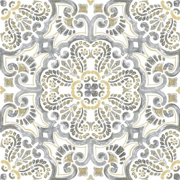 With a hand painted design, these peel and stick tiles have a Moroccan-inspired style. Its intriguing yellow and grey palette will give bathroom and kitchen floors an exciting look. Antico Peel & Stick Floor Tiles Peel and Stick Tiles contains 10 pieces on 10 sheets that measure 12 x 12 inches. Peel and stick to apply.
