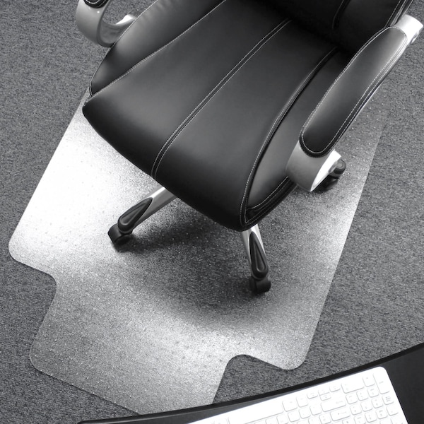 Chair Mat, Maximum Carpet Thickness 1/2 in, Edge Style Straight, Thickness 0.085 in, Overall Width 48 in, Overall Length 60 in, Material Polycarbonate, Body Shape Traditional Lip, Color Clear, Back Texture Studded, For Floor Type Carpet, Includes Lip Yes, Lip Length 25 in, Lip Shape Rectangle, Lip Width 12 in, Product Type Chair Mat