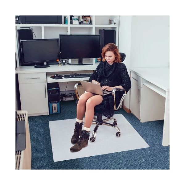 The Revolutionmat Chairmat provides high-quality floor protection and ergonomic performance combined with excellent value. Its strong surface protects your flooring from damage caused by office chair casters, general wear, scuffs and spills. Rigid top surface with low-roll resistance allows your chair to glide easily. Durable design will not crack, chip, break or shatter under normal use and correct application. Polypropylene construction is free of phthalates, tin, lead, cadmium and BPA for peace of mind when used around children or pets. The natural, translucent finish and embossed top surface are great for obscuring worn and damaged flooring.