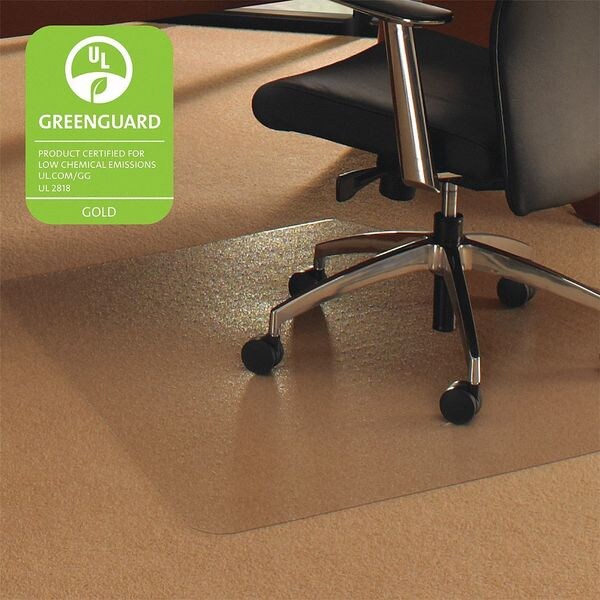 Cleartex Ultimat polycarbonate chair mats are the ultimate in quality and durability in floor protection and ergonomics. These high clarity chairmats for carpeted flooring are made from Floortex Original polycarbonate, which has double the impact strength of PVC and will not crack, curl, discolor or smell. The perfectly flat and hard surface provides easy glide movement of caster based chairs which can reduce leg fatigue and lower back strain. Ultimat is environmentally safe, free from Phthalates, PVC and toxic chemicals. An ideal choice for people with allergies. Eco-friendly manufacturing with 50% of our manufacturing site’s energy coming from on-site and external renewable sources. 100% recyclable. Our polycarbonate mats lie perfectly flat from delivery and can be used immediately.