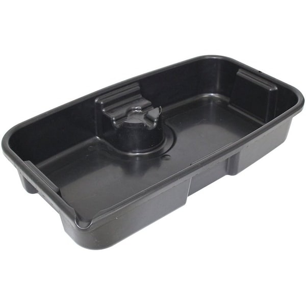 Designed to capture the full stream of an oil change Oil filter stand allows for complete filter draining and keeps it out of the oil Tough structure, sturdy handles on all sides and a corner pour feature Holds up to 11 qt of oil Unit dimensions of 2212 in x 1212 in x 4 in