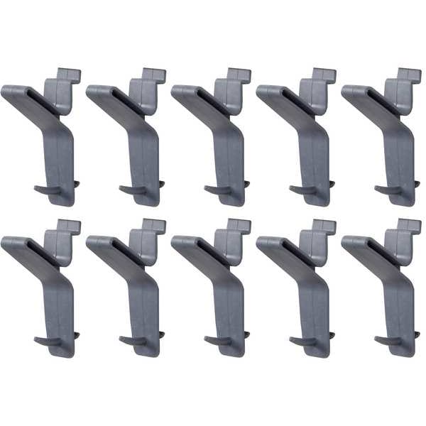 Slatwall X-Hook, Plastic, PVC Coated, Gray, Overall Depth 2 1/4 in, Overall Height 4 1/2 in, Overall Width 1 1/2 in, Mounting Type Hanging, Number of Hooks 10, Hook Type X-Hook, Load Capacity 15 lb, Package Quantity 10