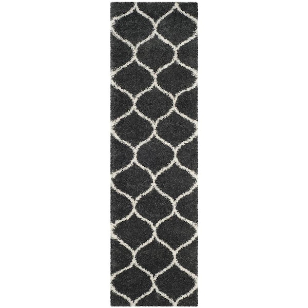 2 ft. 3 in. x 8 ft. Hudson Shag Power Loomed Runner Rug; Dark Grey & Ivory (Discontinued)