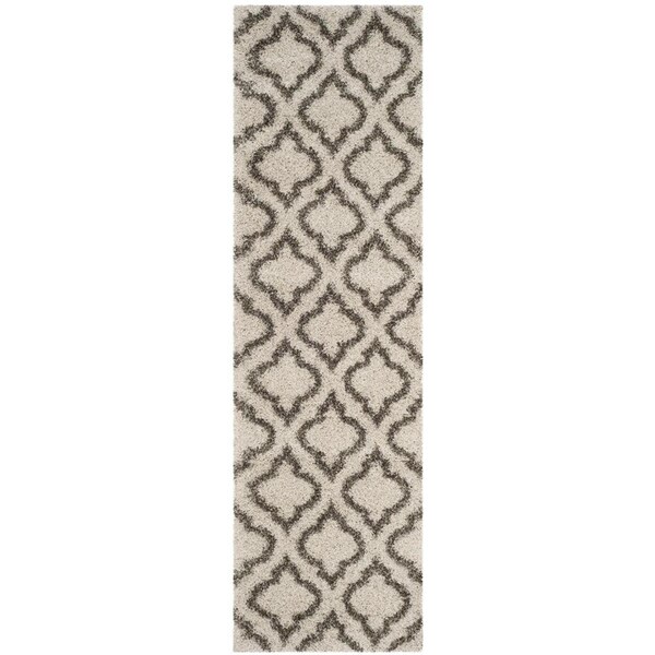 2 ft. 3 in. x 8 ft. Hudson Shag Power Loomed Runner Rug, Ivory & Grey (Discontinued)