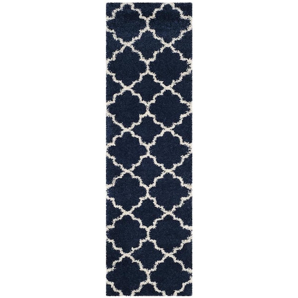 2 ft. 3 in. x 8 ft. Hudson Shag Power Loomed Runner Rug, Navy & Ivory (Discontinued)