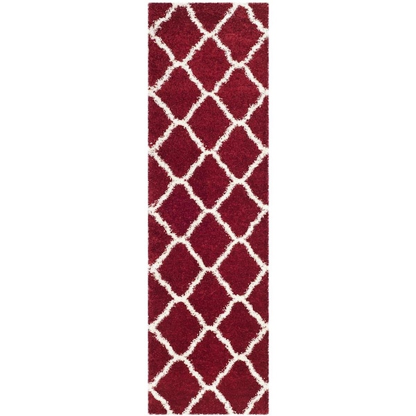 2 ft. 3 in. x 8 ft. Hudson Shag Power Loomed Runner Rug, Red & Ivory (Discontinued)