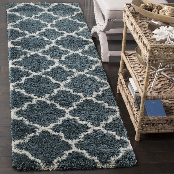 2 ft. 3 in. x 8 ft. Hudson Shag Power Loomed Runner Rug, Slate Blue & Ivory (Discontinued)