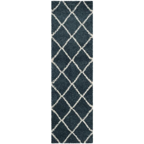 2 ft. 3 in. x 8 ft. Hudson Shag Power Loomed Runner Rug, Slate Blue & Ivory (Discontinued)