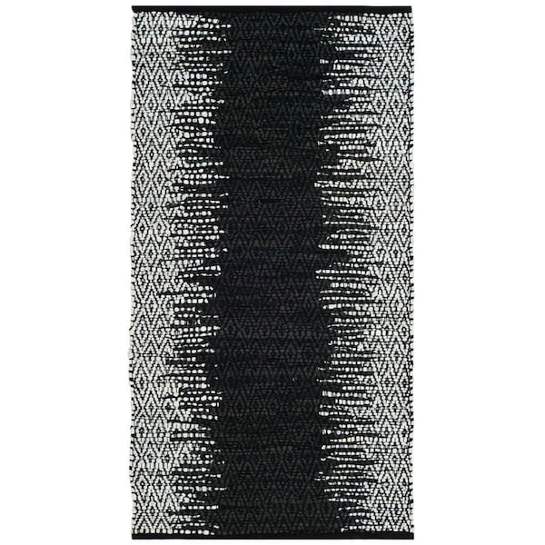 2 x 3 ft. Vintage Leather Hand Woven Area Rug Light Grey & Black - Accent (Discontinued)