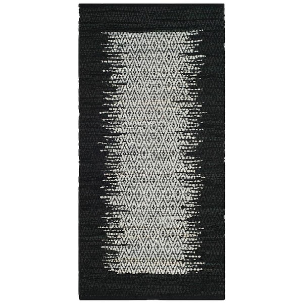 2 x 3 ft. Vintage Leather Hand Woven Area Rug, Light Grey & Black - Accent (Discontinued)