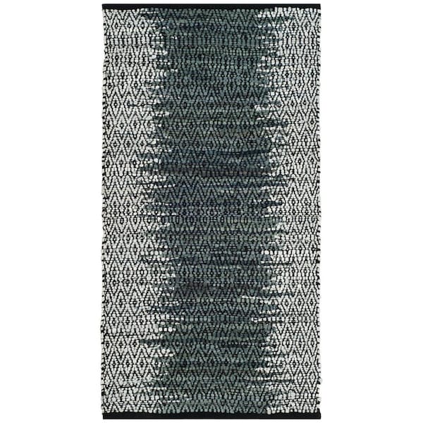 2 x 3 ft. Vintage Leather Hand Woven Area Rug, Light Grey & Charcoal - Accent (Discontinued)
