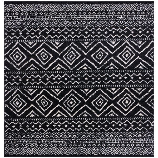 3 x 3 ft. Tulum Bohemian & Contemporary Square Rug - Black & Ivory (Discontinued)