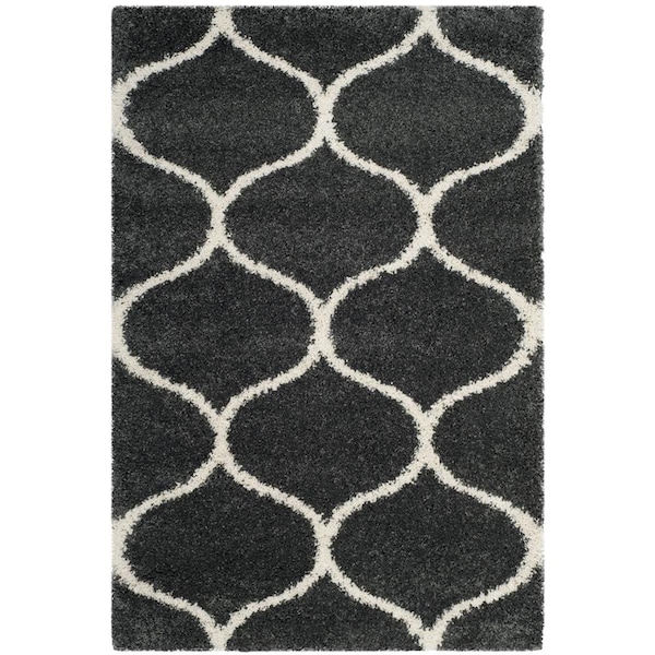 3 x 5 ft. Hudson Shag Power Loomed Rug; Dark Grey & Ivory - Small Rectangle