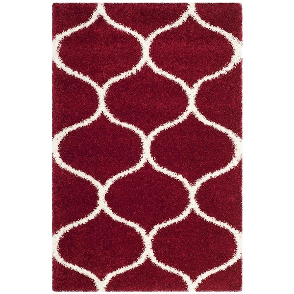 3 x 5 ft. Hudson Shag Power Loomed Rug, Red & Ivory - Small Rectangle