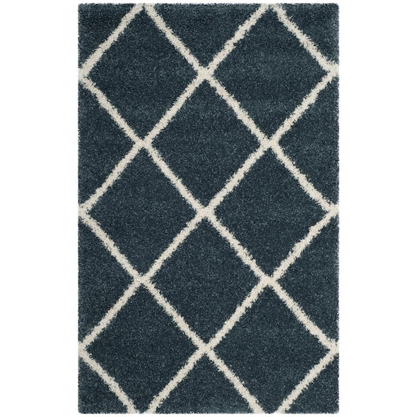3 x 5 ft. Hudson Shag Power Loomed Rug, Slate Blue & Ivory - Small Rectangle