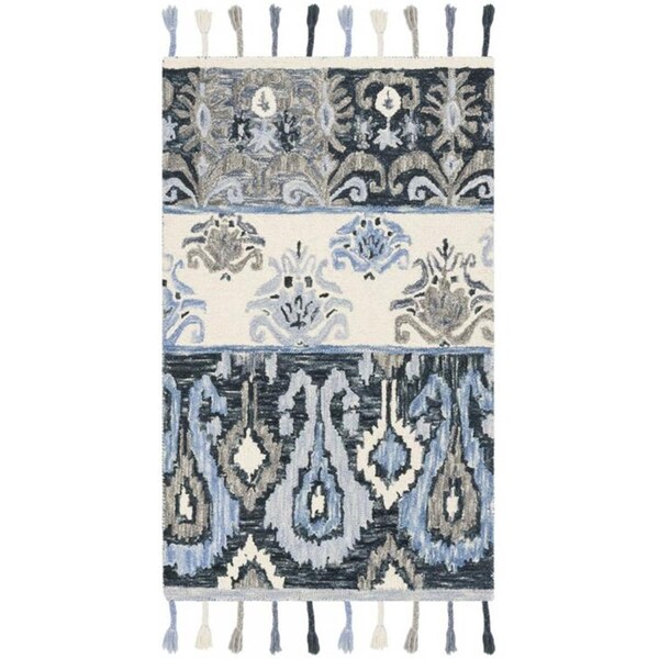 3 x 5 ft. Suzani Hand Hooked Rug, Small Rectangle - Blue & Ivory