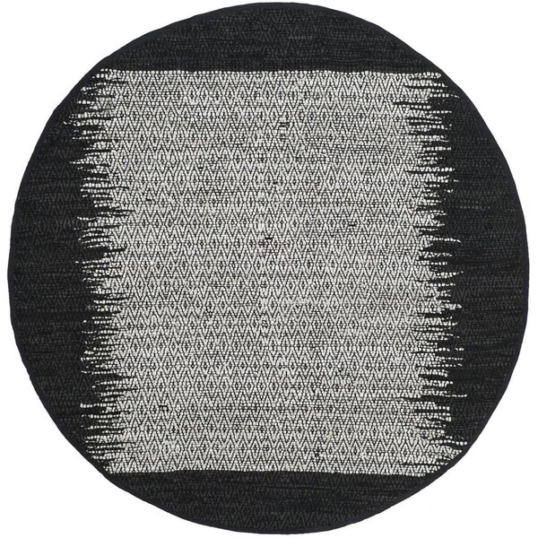 4 ft. x 4 ft. Round Vintage Leather Hand Woven Rug, Light Grey & Black (Discontinued)