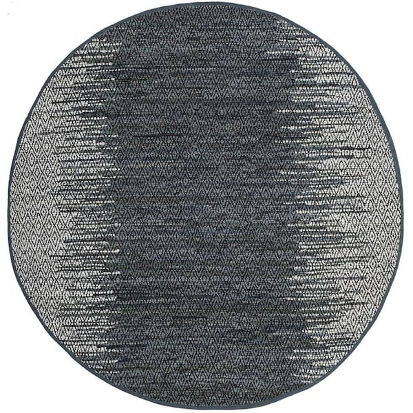 4 ft. x 4 ft. Round Vintage Leather Hand Woven Rug, Light Grey & Charcoal (Discontinued)