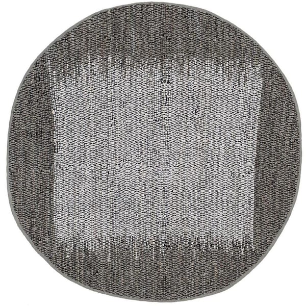 4 ft. x 4 ft. Round Vintage Leather Hand Woven Rug; Light Grey & Grey (Discontinued)