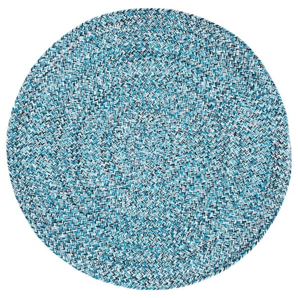 4 x 4 ft. Braided Contemporary Round Rug; Blue & Black