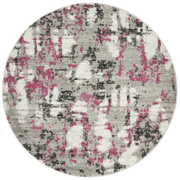 4 x 4 ft. Skyler Contemporary Round Power Loomed Rug; Grey & Pink (Discontinued)