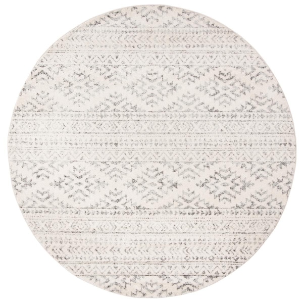 4 x 4 ft. Tulum Global Round Power Loomed Rug; Ivory & Grey