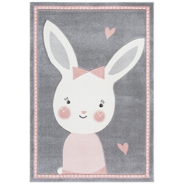 4 x 6 ft. Carousel Kids & Youth Power Loomed Rectangle Rug, Grey & Ivory