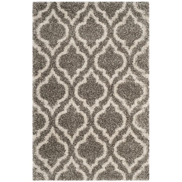 4 x 6 ft. Hudson Shag Power Loomed Rug; Grey & Ivory - Small Rectangle