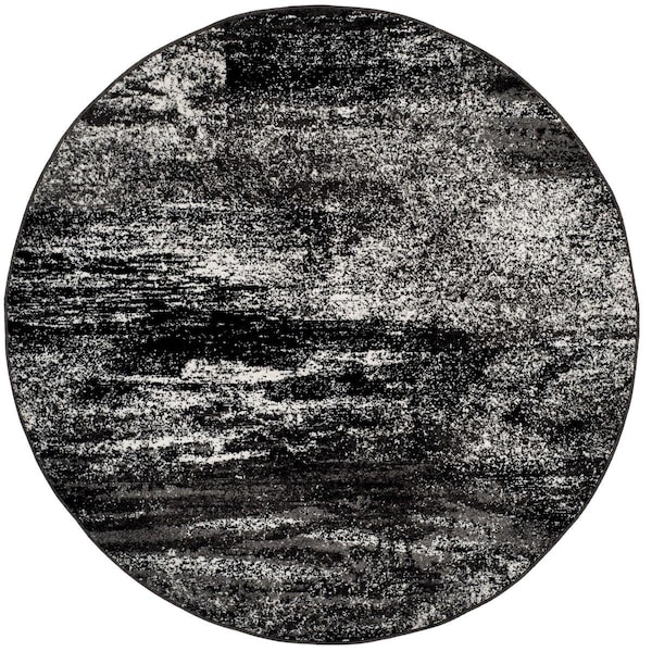 5 x 5 ft. Adirondack Contemporary Round Power Loomed Rug; Silver & Black (Discontinued)