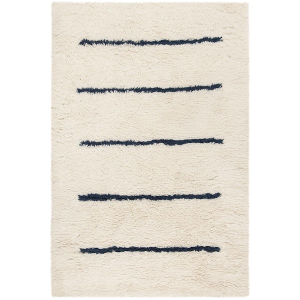 5 x 8 ft. Kenya Contemporary Rectangle Hand Knotted Rug Ivory & Navy (Discontinued)